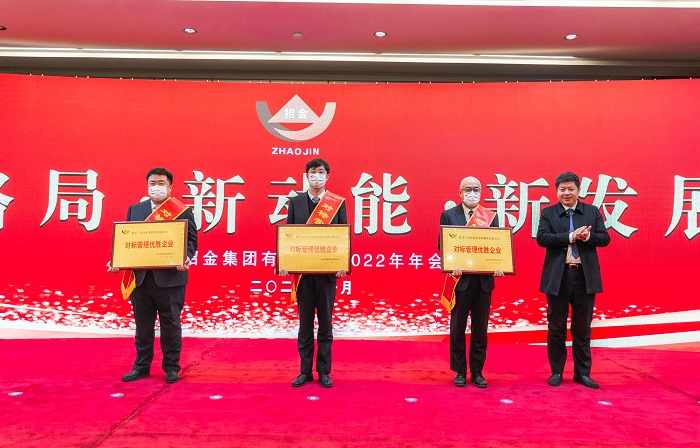 會議對招金集團2021年先進集體和個人進行了表彰,招遠市委書記王彥博,招遠市委副書記、代市長史鑫,招遠市委常委、煙臺市委提名副市長劉超分別為獲得“標兵企業(yè)、優(yōu)秀企業(yè)、先進企業(yè)”獎、“優(yōu)秀企業(yè)家”獎和“對標管理優(yōu)勝企業(yè)”獎的先進集體和個人進行了頒獎。